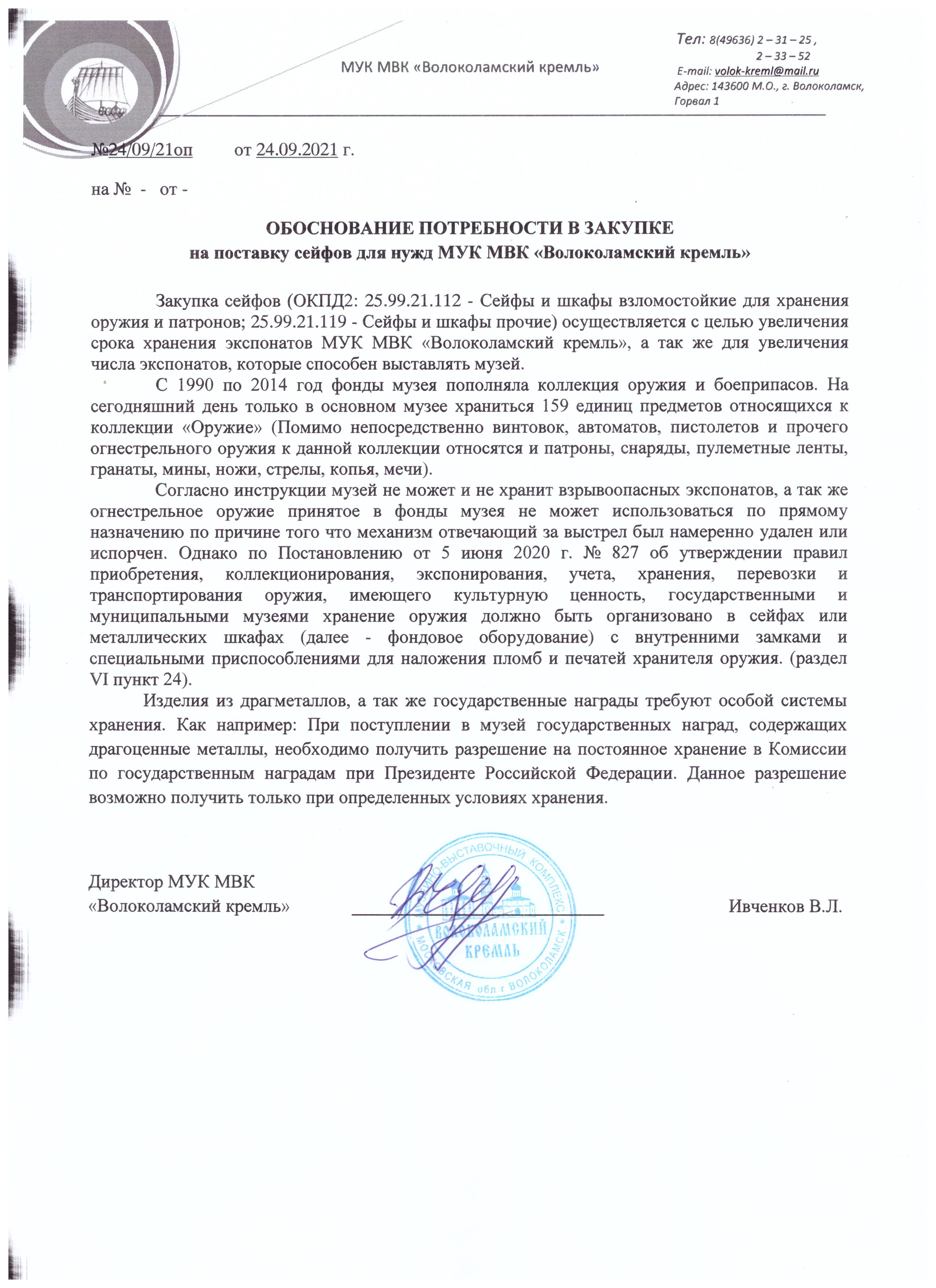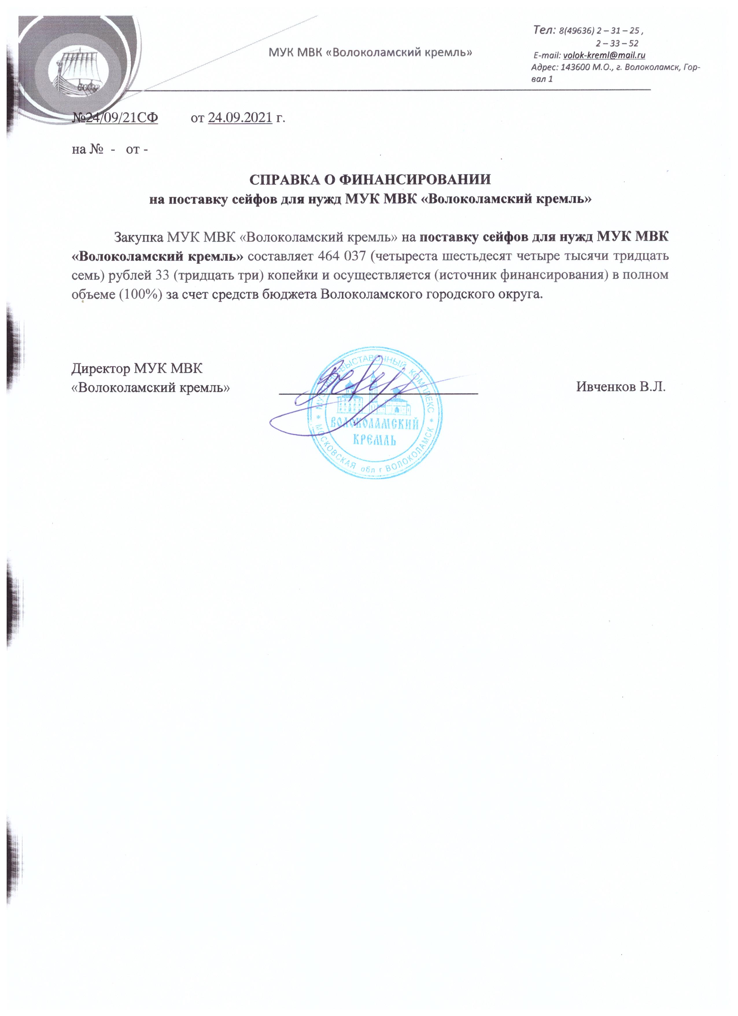 Поставка сейфов для нужд МУК МВК "Волоколамский кремль"